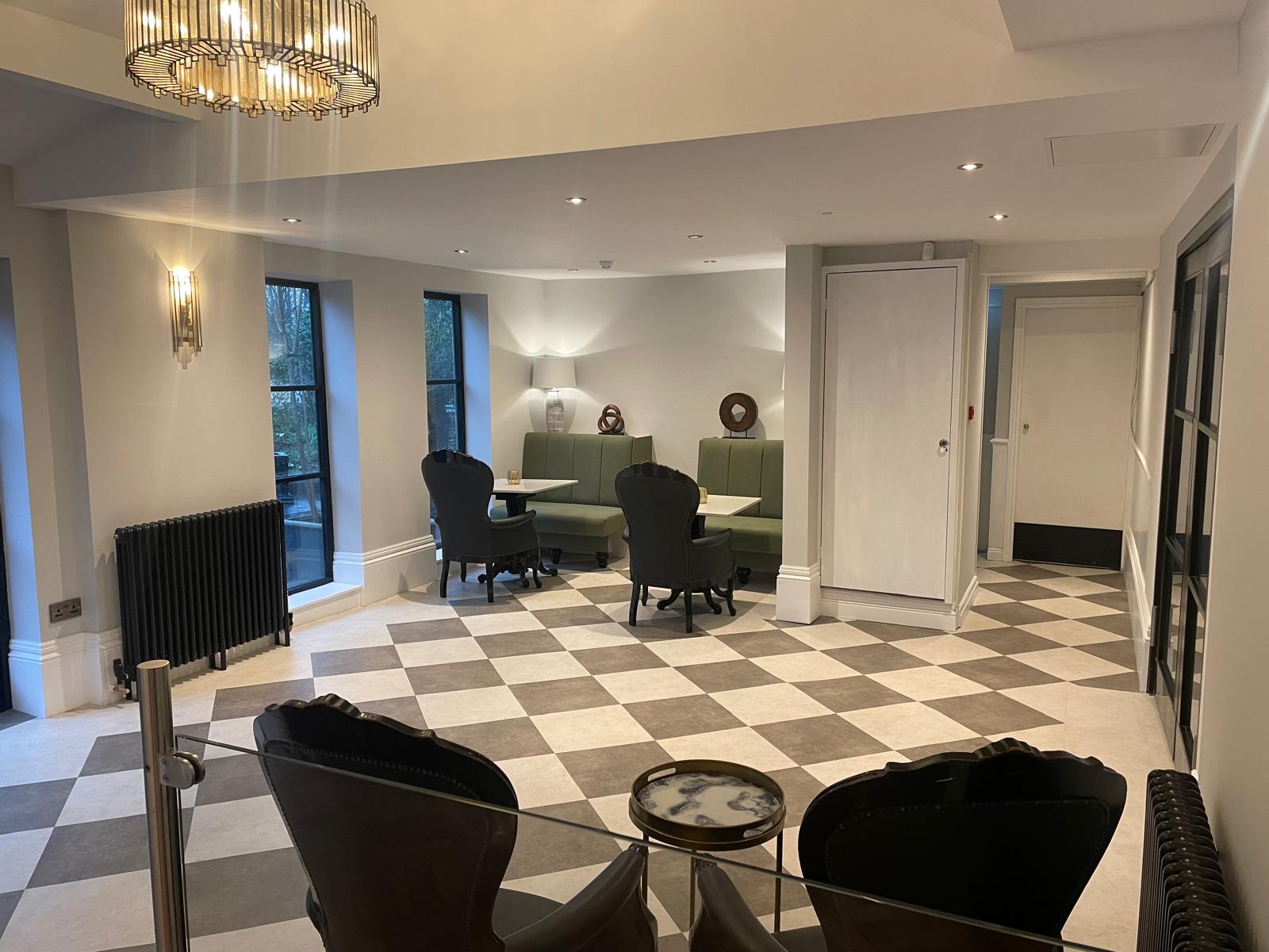 Hillside Function Suite Bar CMJ were invited to return to Hillside Golf Club to replace the bar in the Function Room. This sleek new bar in wenge featured a zinc bar counter top and a stainless steel counter to the backfitting. Fully mirrored, the backfitting reflects and increases light into the room. A classic and timeless design.